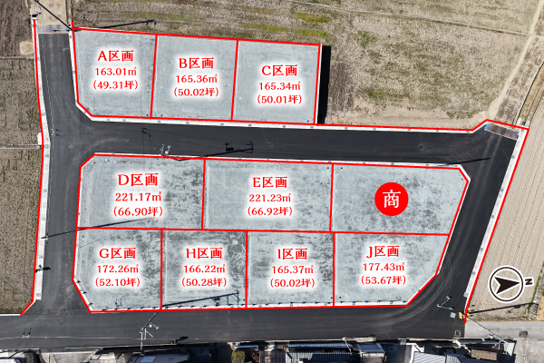 | J区画(644万円) | 177.43㎡ | 53.67坪 | 更地 |